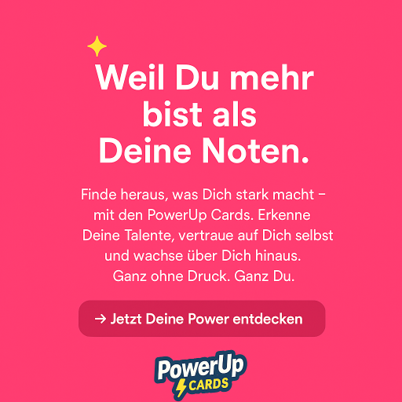 Die PowerUp Cards zeigen dir, was wirklich in dir steckt – fern von Noten und Leistungsdruck. Jede der 20 achteckigen Karten steht für ein Talent wie Kreativität, Mut oder Teamgeist und hilft dir, deine Stärken im Alltag zu erkennen und zu nutzen. Wissenschaftlich inspiriert von der positiven Psychologie, sind sie kompakt, spielerisch und perfekt für Jugendliche ab 14 und genauso wertvoll für Familien und Pädagog:innen.